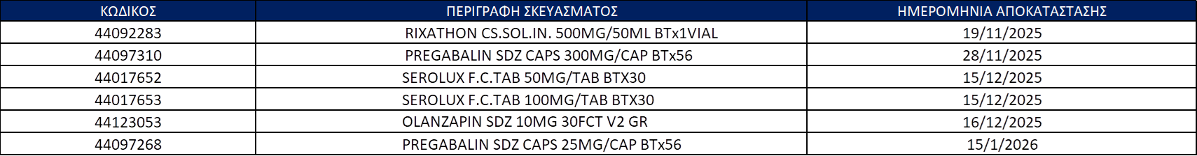 Στα πλαίσια της καλύτερης δυνατής εξυπηρέτησής και ενημέρωσής σας, σας αποστέλλουμε την εβδομαδιαία επικοινωνία σχετικά με τις ελλείψεις των φαρμακευτικών σκευασμάτων από την εταιρία SANDOZ HELLAS.